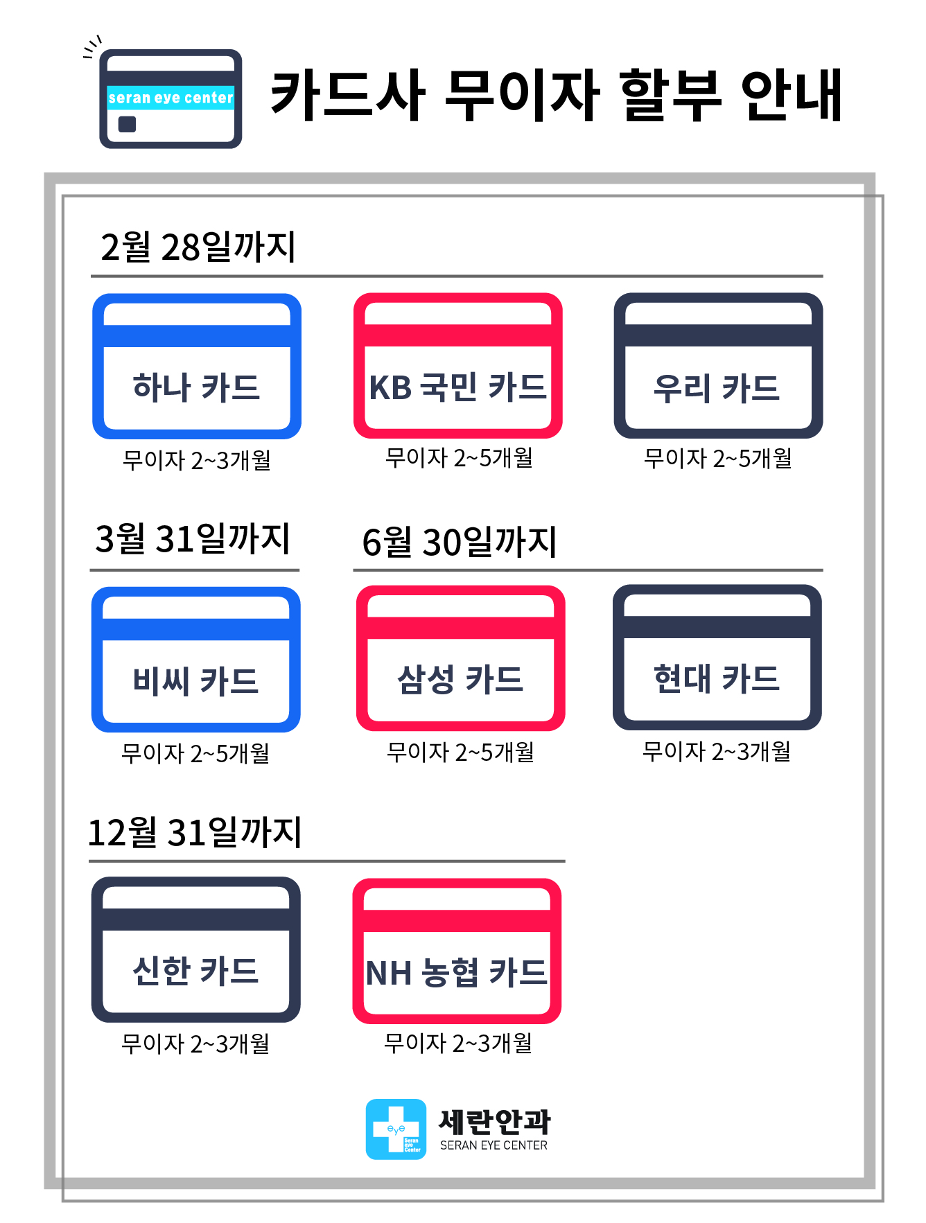 세란안과 카드 무이자 할부 안내