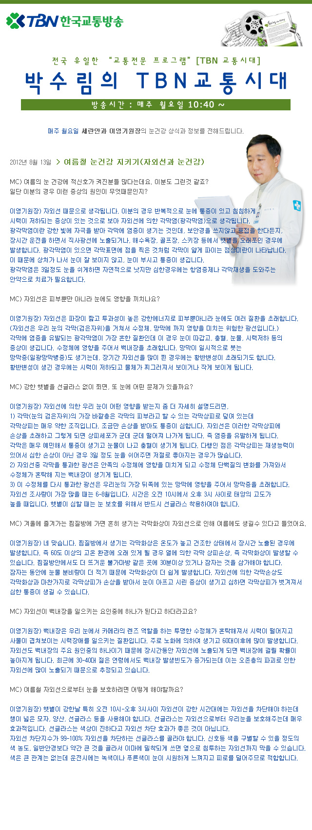 08/13 여름철 눈건강지키기(자외선과 눈건강)