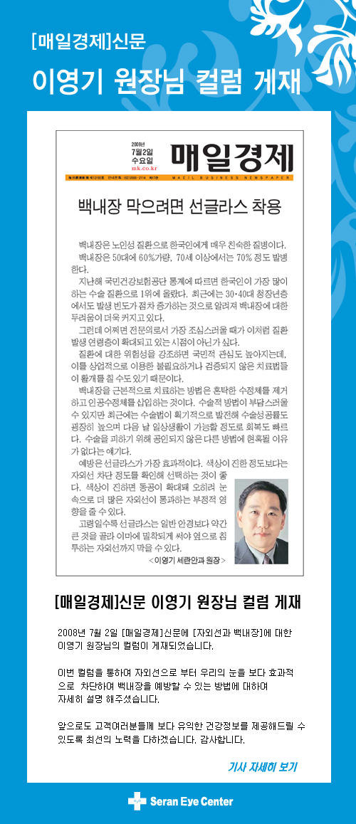[매일경제] 이영기원장님 컬럼게재 - 병원소식